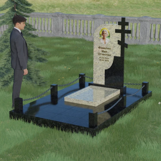 Завершенность композиции придает массивный гранитный цоколь и декоративное ограждение. По углам участка располагаются строгие каменные столбики с аккуратной фаской, соединенные декоративными цепями. Это создает четкие границы сакрального пространства, подчеркивая уединенность и покой. Каждый элемент — от массивного основания до вершины креста — подогнан с ювелирной точностью, формируя единый ансамбль, который будет служить достойным воплощением вашей памяти. Мы поможем вам на каждом этапе, чтобы этот сложный выбор стал шагом к обретению душевного равновесия и созданию места, куда захочется приходить для тихой беседы с тем, кто навсегда остался в вашем сердце.