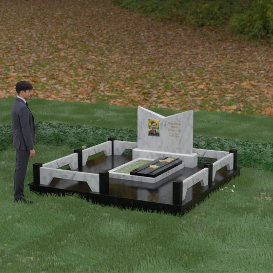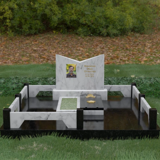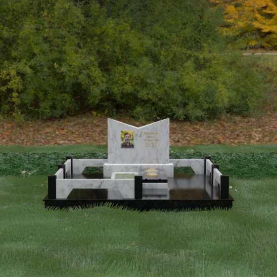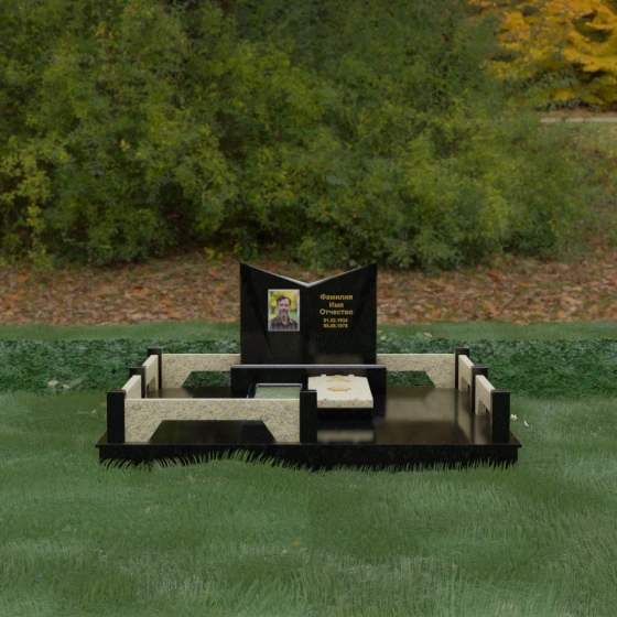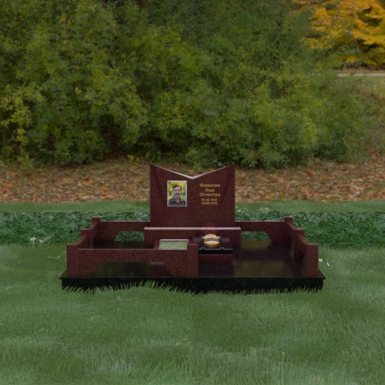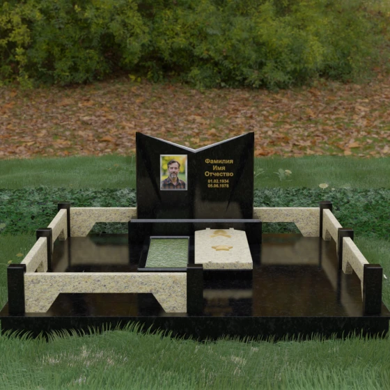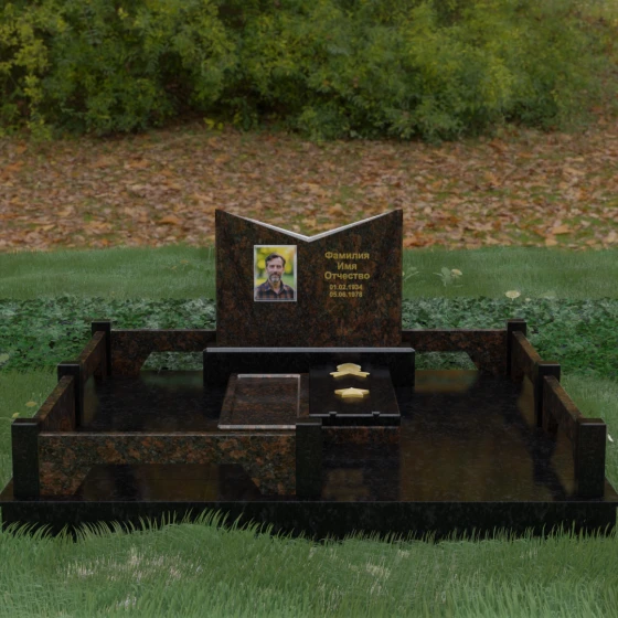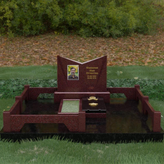 Кому подойдет: Данный мемориальный комплекс разработан для тех, кто хочет подчеркнуть особые заслуги и статус близкого человека. Строгая геометрия, наличие рельефных звезд на плите и форма «раскрытой книги» делают это надгробие идеальным выбором для оформления захоронения военного, ветерана, государственного служащего или человека, чей жизненный путь был примером стойкости и мудрости. Это выбор тех, кто ценит надежность, эстетическую завершенность и безукоризненное качество исполнения, которое останется неизменным для многих поколений.
