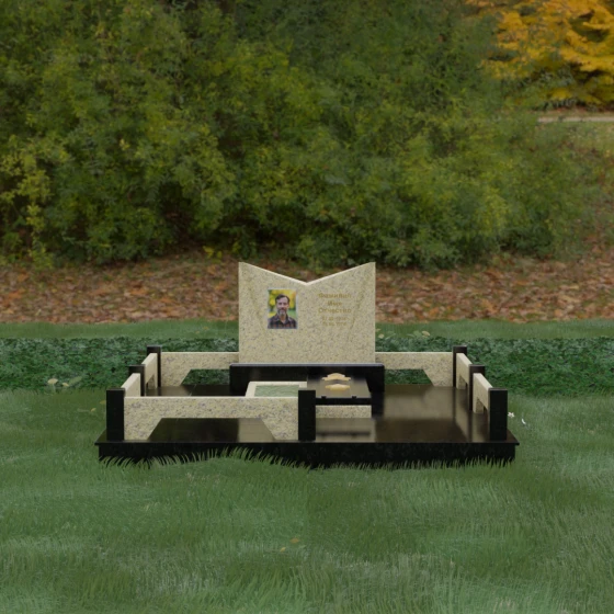 Кому подойдет: Данный мемориальный комплекс разработан для тех, кто хочет подчеркнуть особые заслуги и статус близкого человека. Строгая геометрия, наличие рельефных звезд на плите и форма «раскрытой книги» делают это надгробие идеальным выбором для оформления захоронения военного, ветерана, государственного служащего или человека, чей жизненный путь был примером стойкости и мудрости. Это выбор тех, кто ценит надежность, эстетическую завершенность и безукоризненное качество исполнения, которое останется неизменным для многих поколений.
