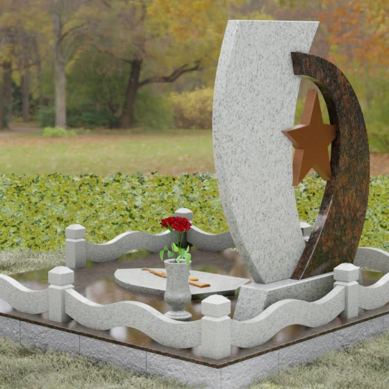 Кому подойдет: Данный мемориальный комплекс спроектирован для увековечивания памяти мужчин, чья жизнь была связана с воинским долгом, государственной службой или героическими поступками. Он станет достойным символом последнего пристанища для ветерана, кадрового офицера или человека с твердым характером. Армейская символика в сочетании с изысканным европейским стилем благоустройства (каменная ваза для живых цветов, лаконичная лампада на постаменте) подчеркивает уважение семьи к заслугам и личным качествам дорогого человека.