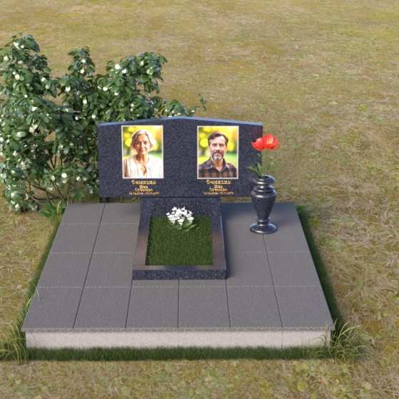 Форма этого памятника символизирует покой и защиту. Прямые линии и четкие грани говорят о стабильности и надежности, а скошенные углы смягчают строгость и добавляют нотку современности. Общая композиция создает ощущение умиротворения и вечности, напоминая о том, что память о близких будет жить в наших сердцах всегда.