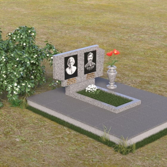 Памятник ПГ040 представляет собой композицию, в которой гармонично сочетаются строгие геометрические формы и плавные, умиротворяющие линии. Верхняя стела, выполненная из полированного гранита, словно зеркало, отражает небо и окружающий мир, создавая ощущение легкости и воздушности. Её верхний край имеет волнообразную форму, напоминающую о жизненном пути, полном взлетов и падений, но завершающемся в покое и гармонии. На поверхности стелы искусно выгравированы портреты, обрамленные лаконичными надписями, которые словно шепот времени, сохраняют память об ушедшем.