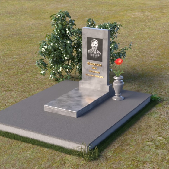 Прямоугольная форма стелы, выбранная для этой мемориальной композиции, несет в себе глубокий символизм. Она олицетворяет покой, защиту и вечность. Строгие линии и четкие грани говорят о силе духа и нерушимости памяти. Вертикальное направление стелы символизирует стремление к высшему, к духовному миру, а горизонтальная плита, отражающая свет, напоминает о том, что жизнь продолжается, несмотря на утрату. Композиция в целом создает ощущение умиротворения и светлой печали.