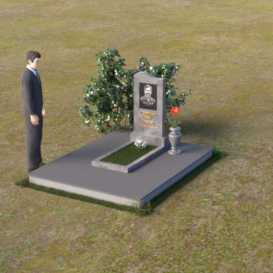 Форма арки, выбранная для стелы, символизирует переход из земной жизни в вечность. Она словно врата, открывающиеся в иной мир, полный покоя и света. Закругленные грани стелы говорят о мягкости и доброте ушедшего человека, о его способности сострадать и любить. Зеркальная полировка подставки отражает надежду на светлое будущее и веру в бессмертие души. В целом, мемориальная композиция излучает чувство защищенности и умиротворения, создавая атмосферу тихой скорби и светлой памяти.